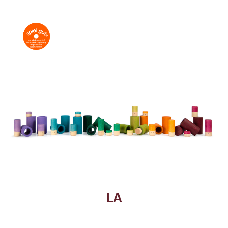 Grapat Nins: Diese charmanten Holzfiguren sind in verschiedenen Farben und Formen erhältlich und regen zum Zählen, Sortieren und Rollenspiel an.