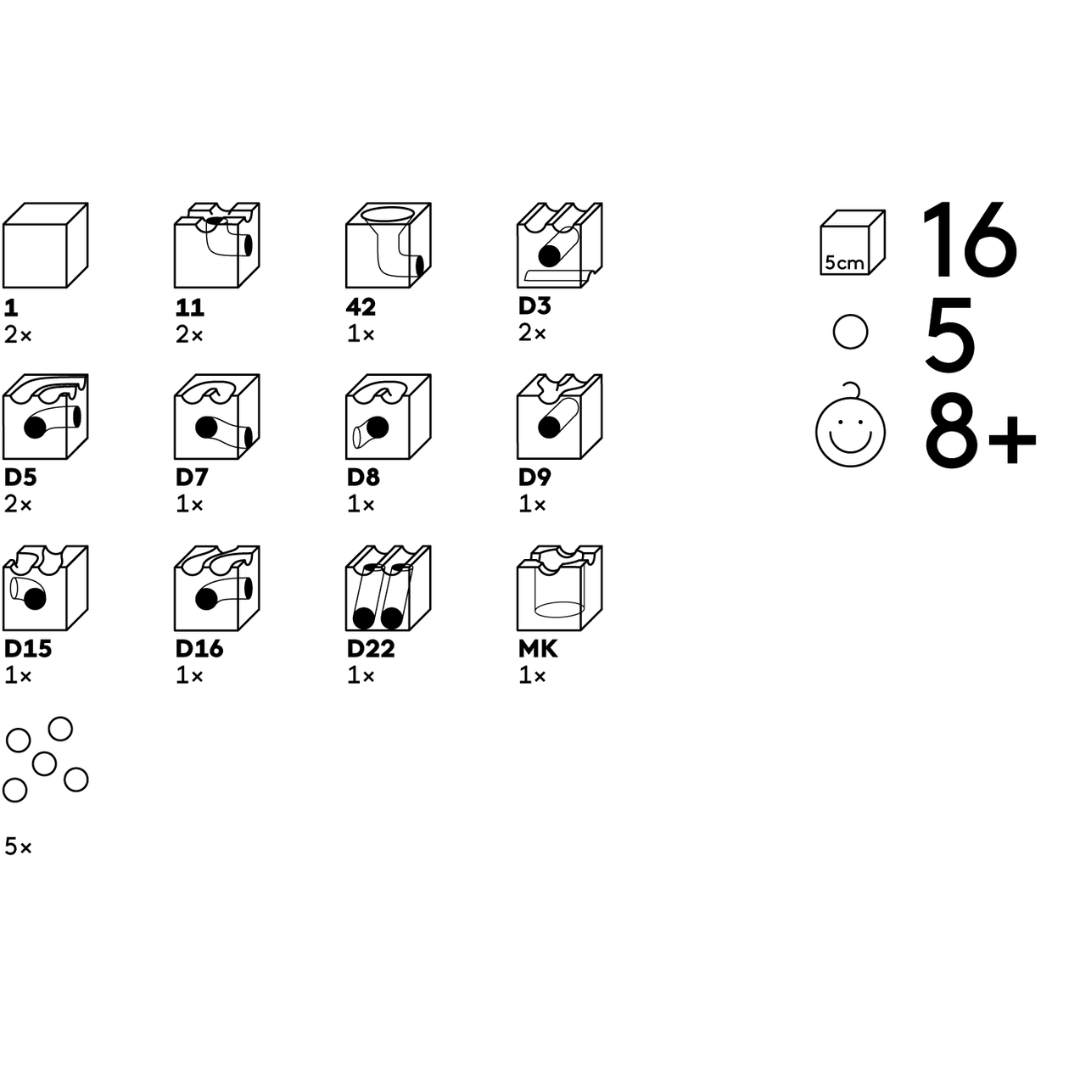 DUO – das Extra Set für den Wettlauf. Mit den DUO Elementen wechseln die Kugeln in die parallele Doppelspur und liefern sich rasante Wettläufe. 16 Elemente, 5 Kugeln, ab 8 Jahren.