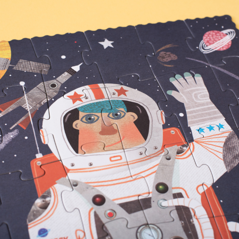 Mit diesem schönen Puzzle von Londji geht es hoch hinaus - in die Weiten des großen Universums! Das liebevoll gestaltete Motiv mit einem Astronauten, Planeten und Co. begeistert mit vielen lustigen Details und ansprechenden kraftvollen Farben.