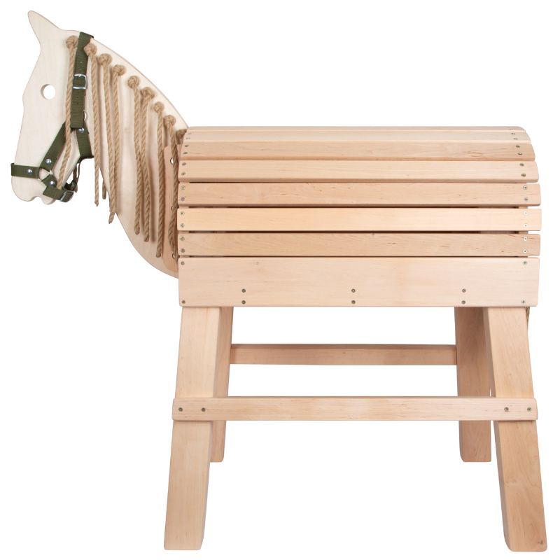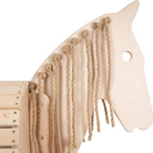 Mit seiner langen Mähne und dem Schweif aus Sisal lädt es zum Frisieren, Zöpfe flechten und Schmücken ein. Die ausgestellten Beine sorgen für sicheren Stand, ganz gleich ob galoppiert, gesattelt oder geputzt wird. Besonders clever: Im Pferdebauch versteckt sich ein geräumiger Stauraum – ideal für Bürsten, Striegel, Halfter und kleine Schätze. Die Klappe lässt sich ganz einfach öffnen und schließen.