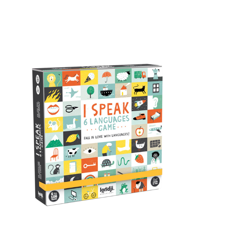 Lerne ganz einfach Vokabeln in verschiedenen Sprachen, indem du das Wortspiel "I speak 6 languages" von londji mit illustrierten Karten spielst. Der beste Weg, um andere Sprachen zu lernen! Wie heißt das "Pferd" auf Französisch? Und "Haus" auf Deutsch? Und "Elefant" auf Italienisch? Und eine "Brille" auf Spanisch? Und "Maus" auf Katalanisch?