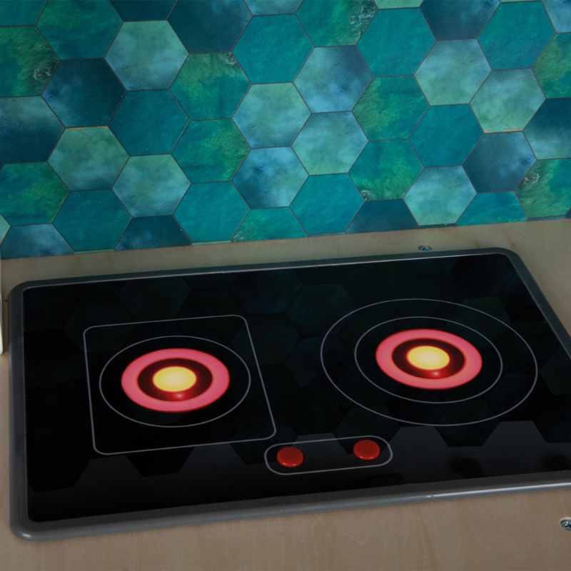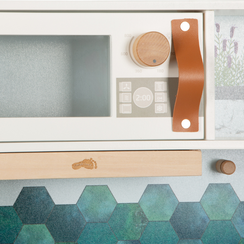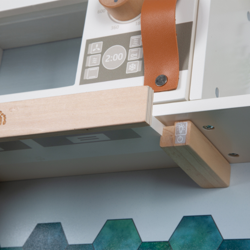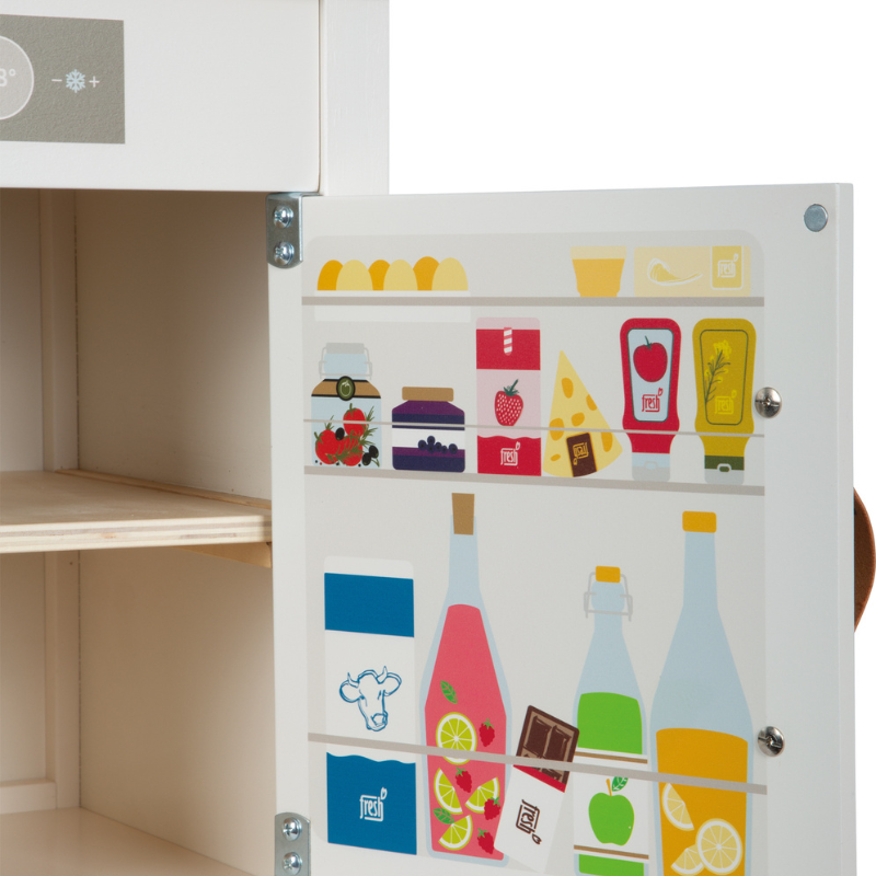 - mit Küchendetails bedruckte Flächen in Kühlschrank und Backofen für mehr Spielspaß