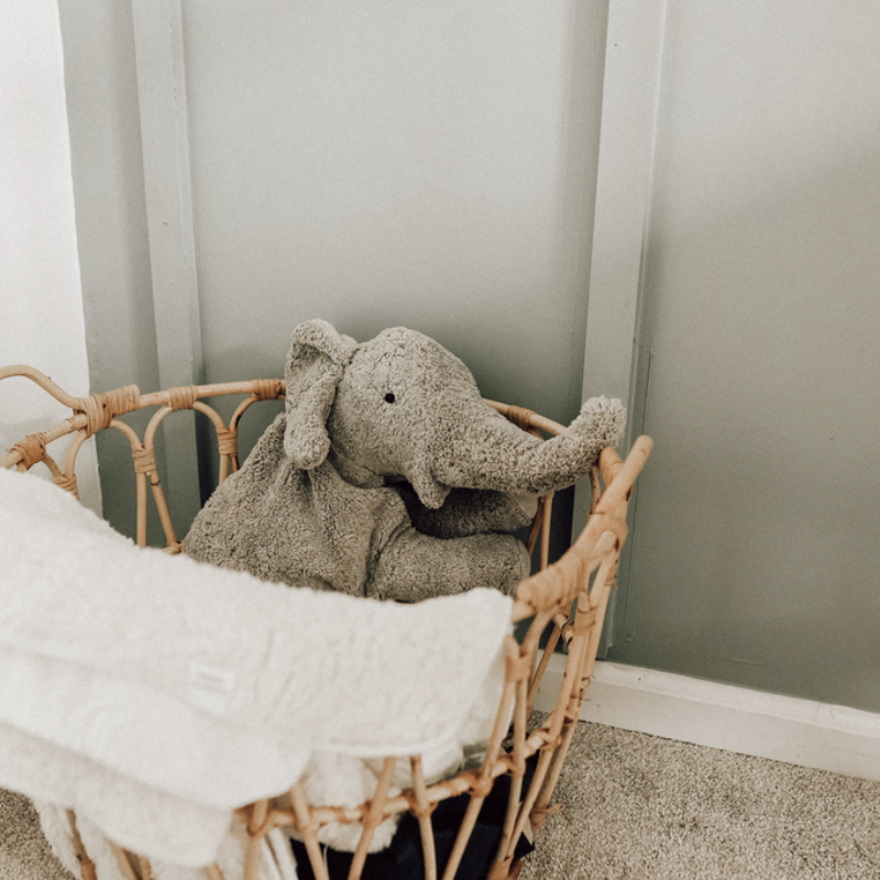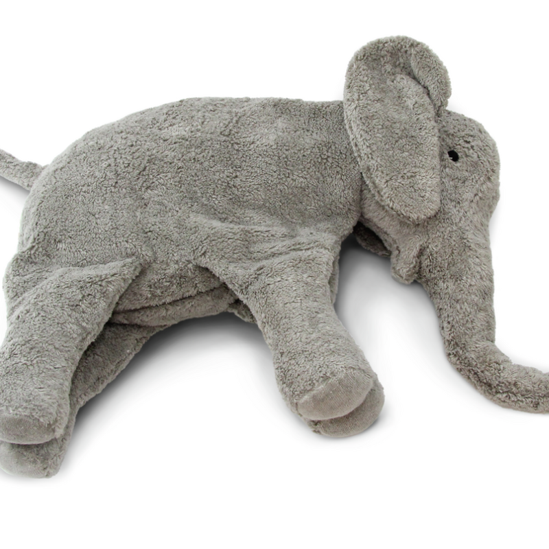 Im Inneren steckt ein herausnehmbares Dinkelkissen, das sich ganz einfach im Ofen erwärmen oder im Kühlschrank kühlen lässt. So wird der Elefant zum treuen Begleiter bei Bauchweh, kalten Füßen oder einfach zum Entspannen nach einem langen Tag.
