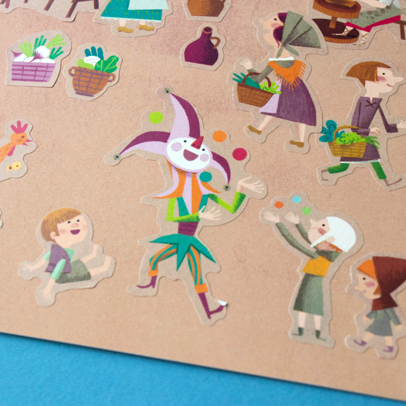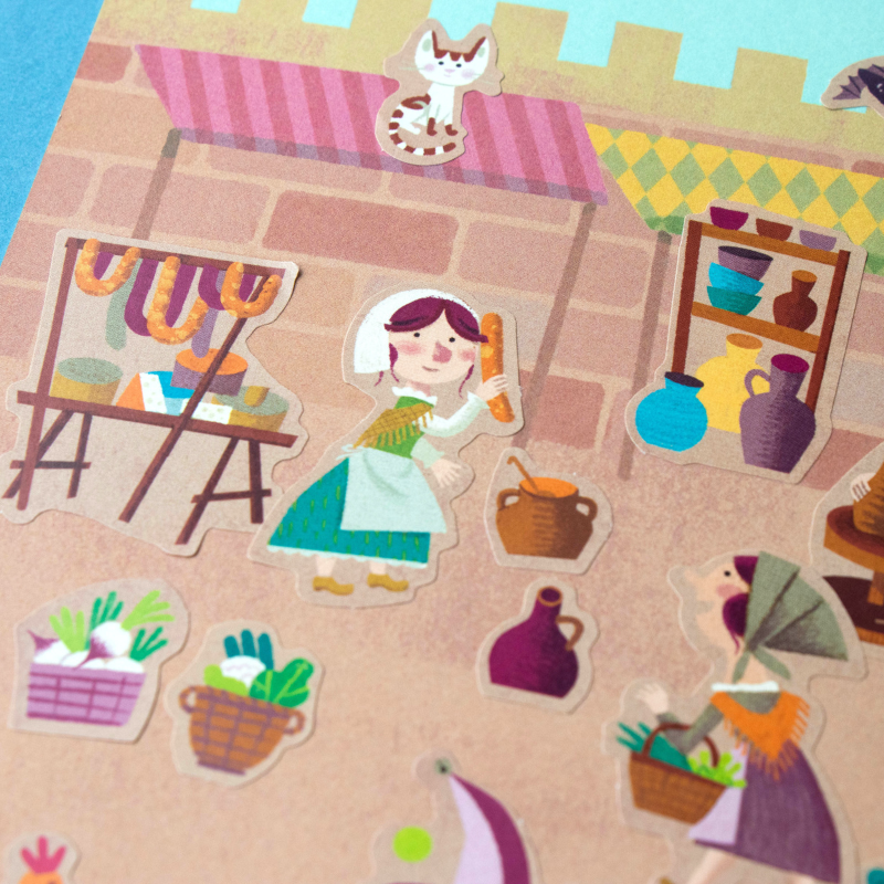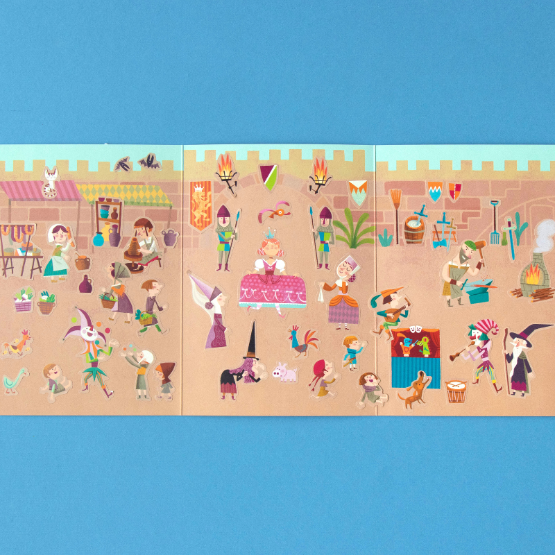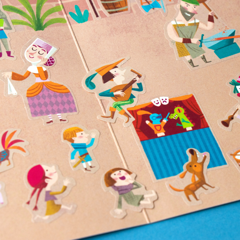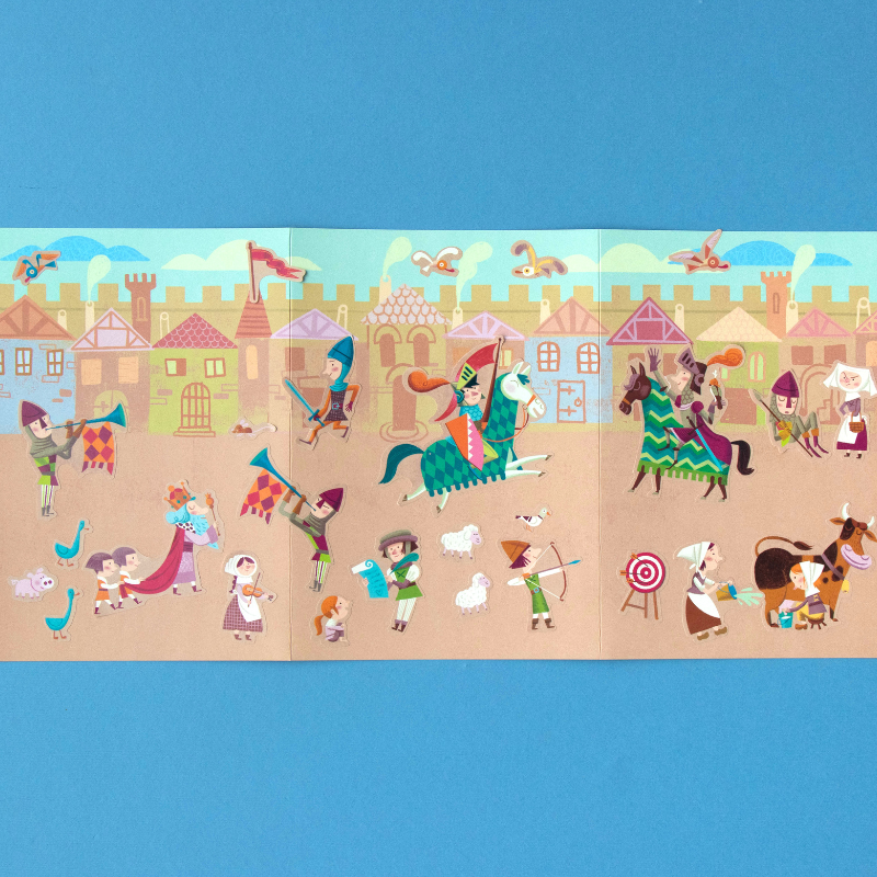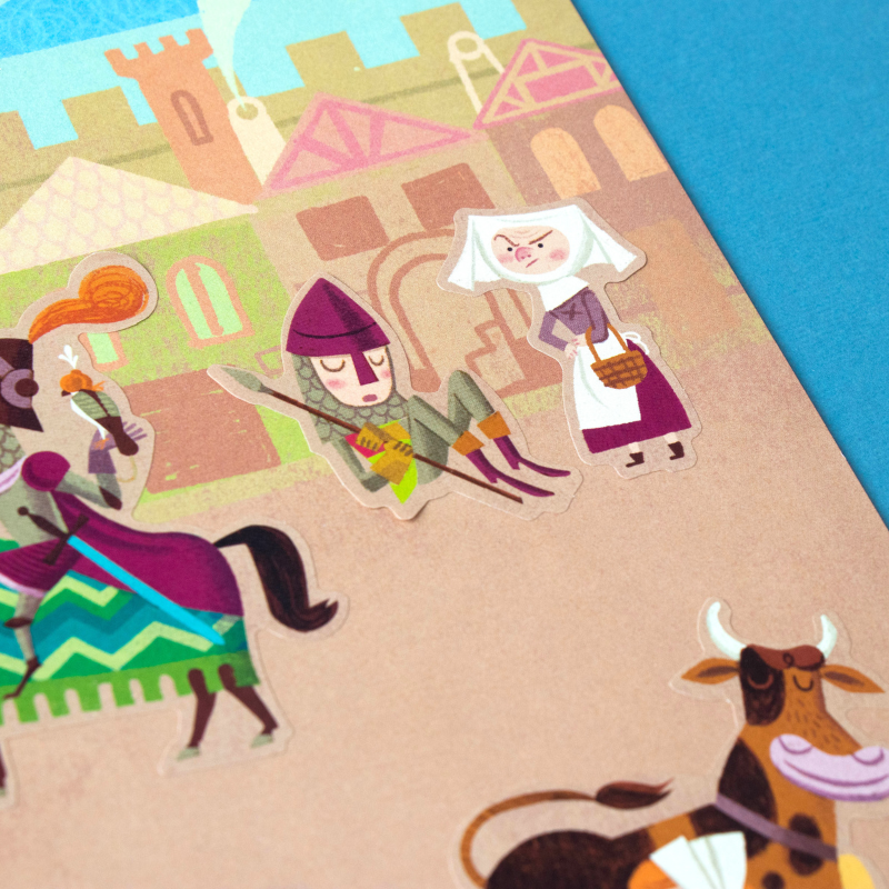 150 tolle, wieder ablösbare Aufkleber "Medieval" von londji aus Spanien. Die verschiedenen Motive zeigen lustige Illustrationen der Ritterwelt. Die Verpackung der Sticker ist auch gleich eine tolle Ritterburg zum bekleben!
