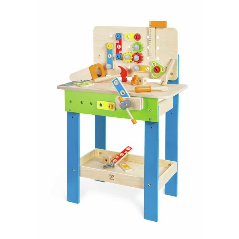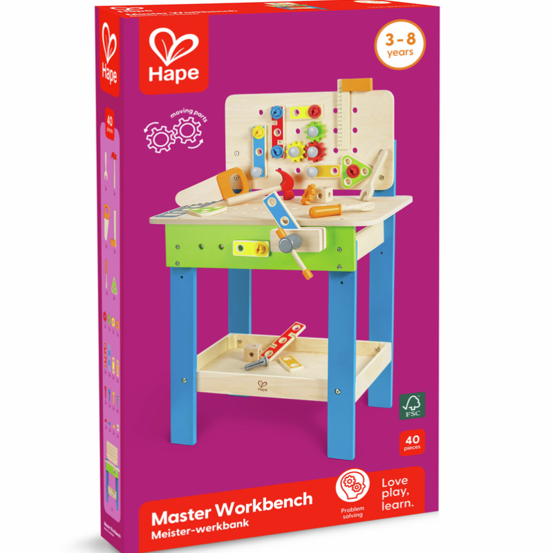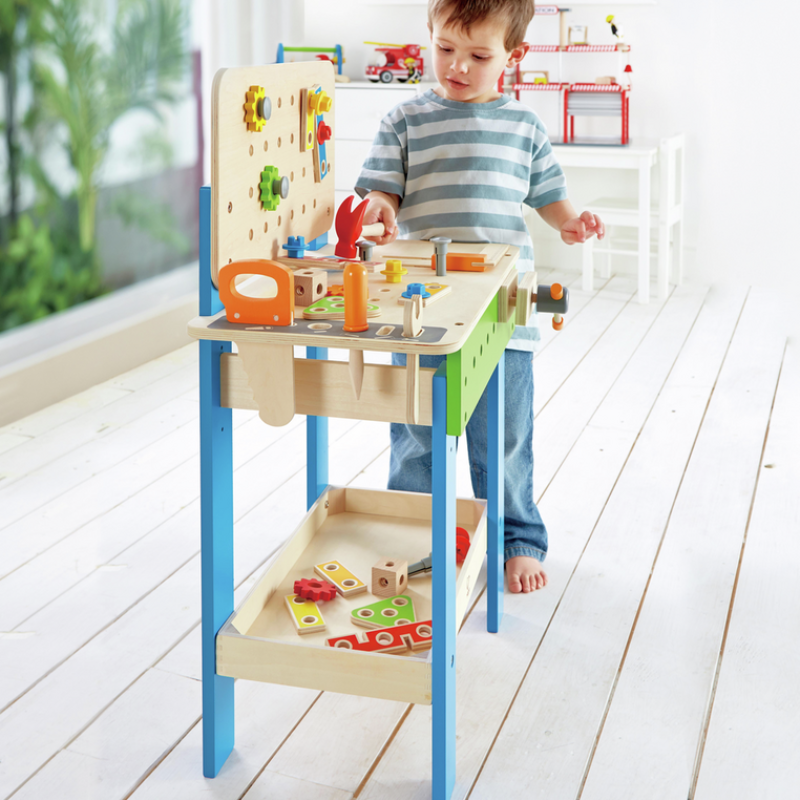 Die Hape Meister-Werkbank ist nicht nur robust und langlebig, sondern auch perfekt auf die Arbeitshöhe von kleinen Händen abgestimmt – für viele Stunden kreativen, selbstbestimmten Spielspaß.