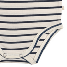 Der kurzärmelige Body NOMA von Minimalisma ist aus wunderbar weicher Biobaumwolle und lässt sich mit nickelfreien Druckknöpfen im Windelbereich verschließen.